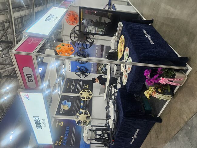 부산 벡스코에서 열린 DSK 2026(부산 드론쇼 코리아) 전시장 B10 부스. ‘ALL ABOUT AEROBEE’라는 슬로건 아래 수상 이착륙 드론과 모듈형 덕트 드론이 전시됐다. 이번 전시는 에어로비(주)의 첫 공식 대외 참가다. 규모는 크지 않았지만, 기술 방향과 철학은 분명했다.