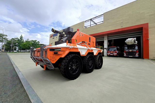 무인소방로봇이 출동에 앞서 대기하는 모습
